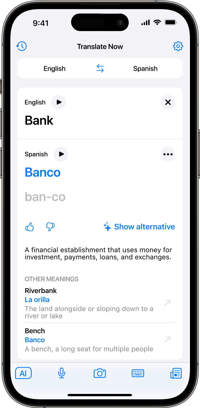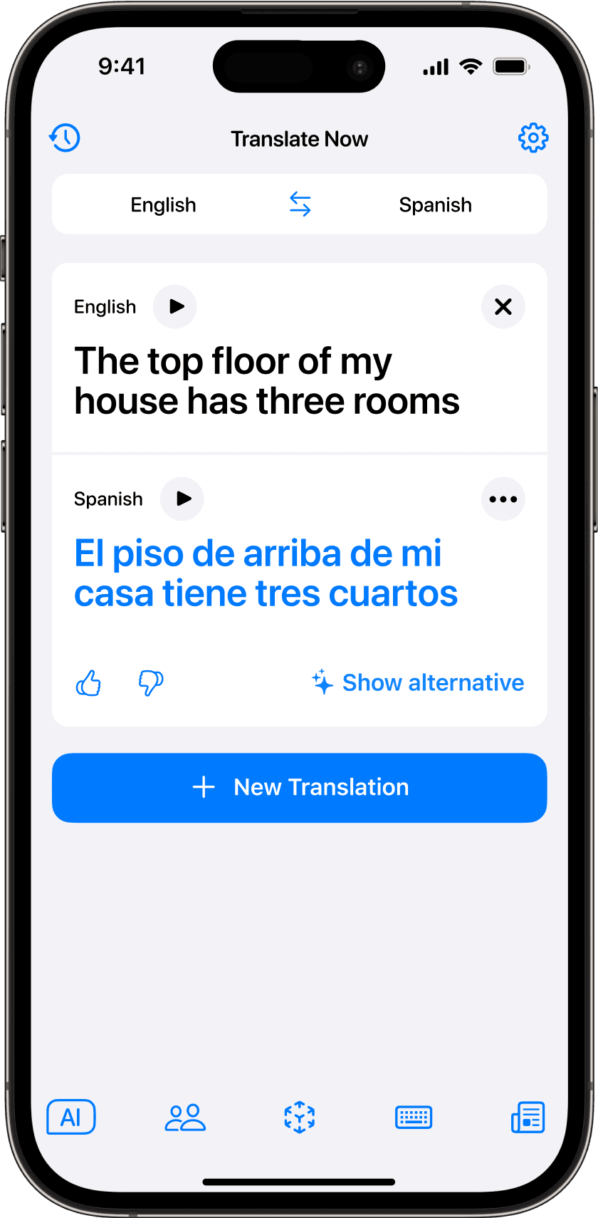 Translate Now was the first app on the App Store to introduce an AI real-time voice translation experience.